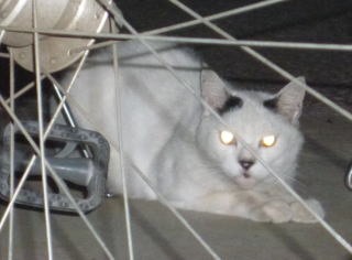 28.フーちゃん。自転車小屋より外の方がいいよ。