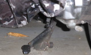 10.パパとフーちゃんが一緒にいたらクーちゃんが猛ダッシュで乱入してきた。天照大御神が天の岩戸に隠れたようにバイク・カバーに隠れたフーちゃん。