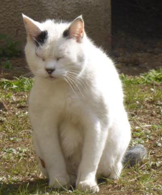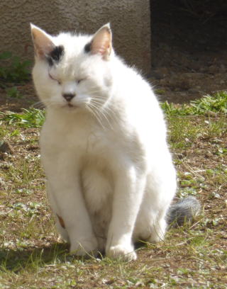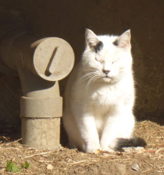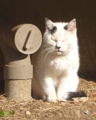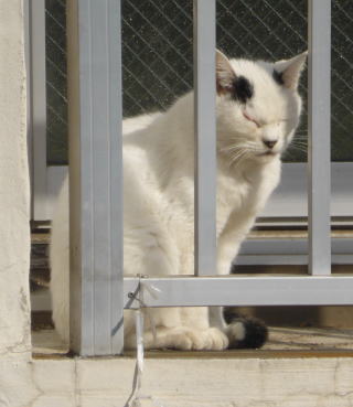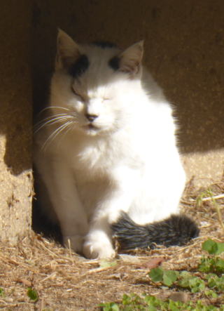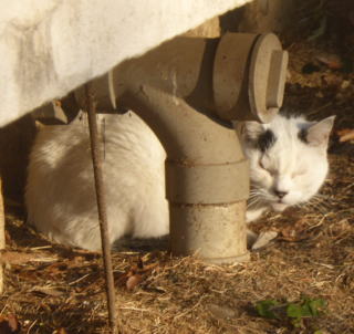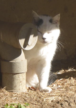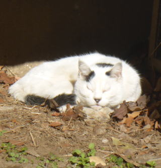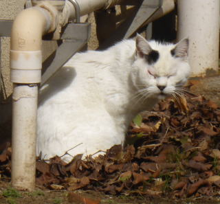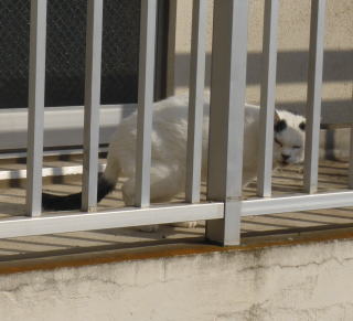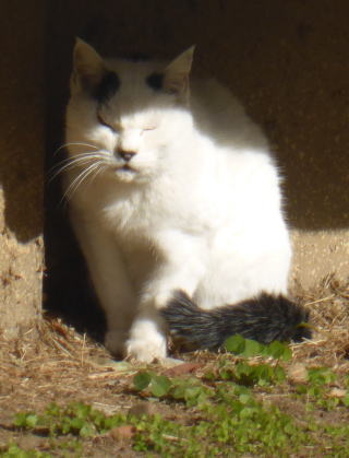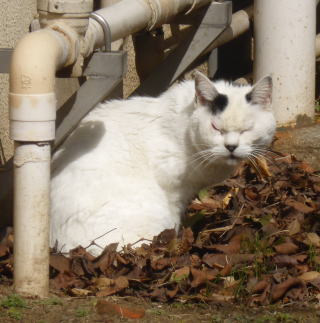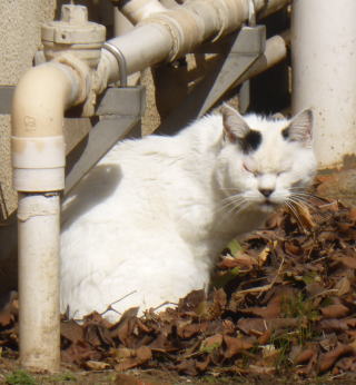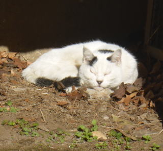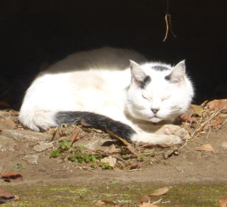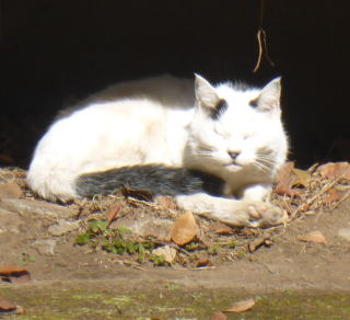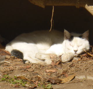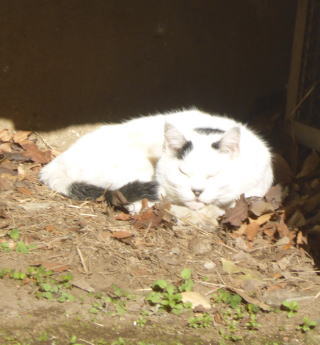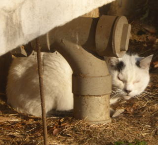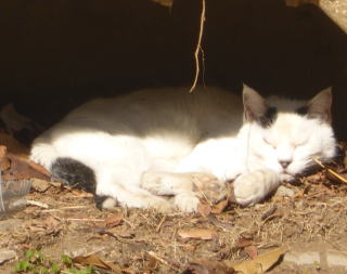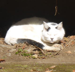 43.お婆さん猫のフーちゃんは晴れの日はこうやって寝て過ごします。人口密度が低いから安心して寝ていられます。