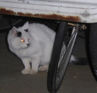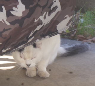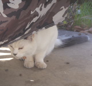 16.今日は自転車小屋に入ってさらにバイク・カバーに隠れたフーちゃん。