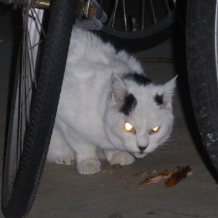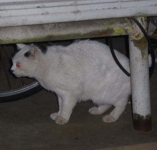 25.パパに「ニャーン」と声をかけて自転車小屋に入ったフーちゃん。