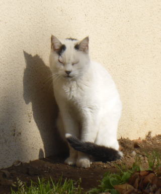 1.朝日をあびたフーちゃん。フーちゃんの影ができている。