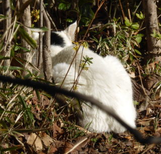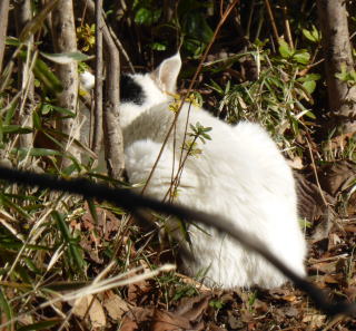 3.ここは九郎ちゃんの縄張りの中。九郎ちゃんは深夜から早朝に縄張りを見張って昼間は寝ている。昼間はフーちゃんの時間だ。