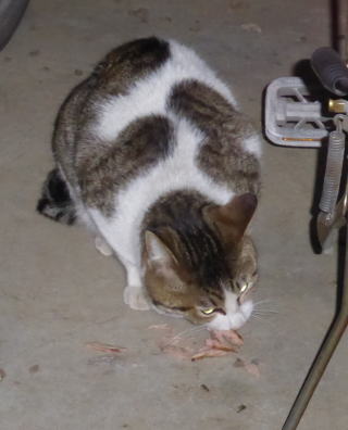 24.自転車小屋でメグちゃんは素直に焼き鰹を食べてくれましたが...。