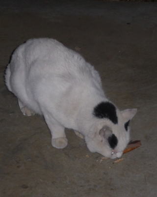 41.フー婆さん。今夜は焼き鰹を端から綺麗に食べていますね。