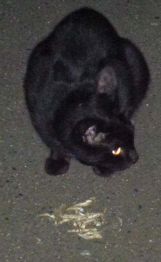 36.焼き鰹をわずか数十秒で食べてしまう。
