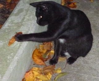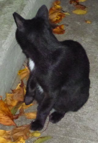 2.いつも黒白の子猫と行動を共にするのに今日は一匹。