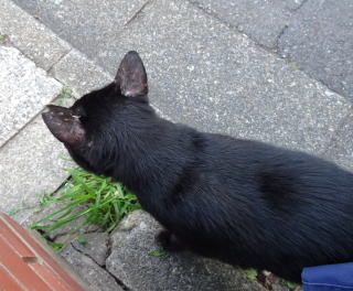 7.パパの足元でパパをエスコート(護衛)する九郎ちゃん。母親が短毛種(ショート・ボブ・ミディアム)でなければ九郎ちゃんはフサフサの中毛(セミロング)ではなく長毛(ロング)だったのでしょう。。