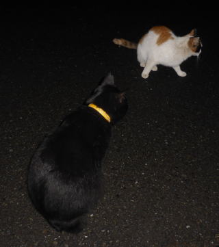 4.日本猫の細子ちゃんには女尻ではなく顔を凝視して攻撃に入ります。凶暴な九郎ちゃんです。