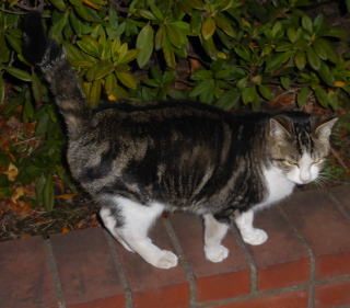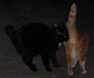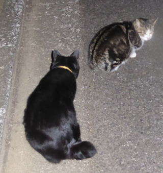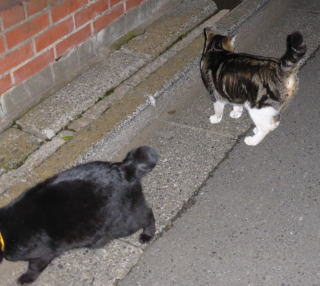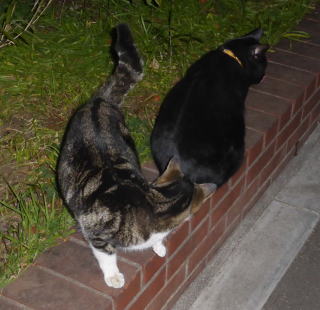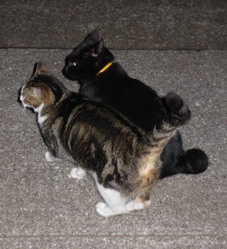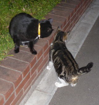 21.キリスト教会の前で愛を語る二匹。どう見てもラブラブです。アメリカ系のネコ同士だからキリスト教徒なのかもしれない。「九郎ちゃん。うつむいちゃってどうしたの?」と黒珍獣ちゃんが言っていそうな感じです。