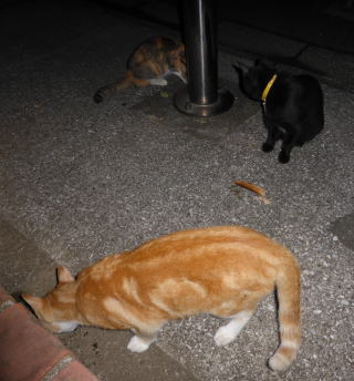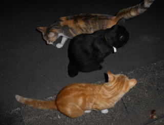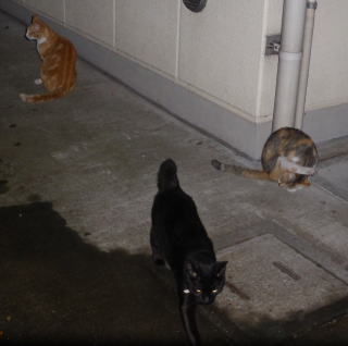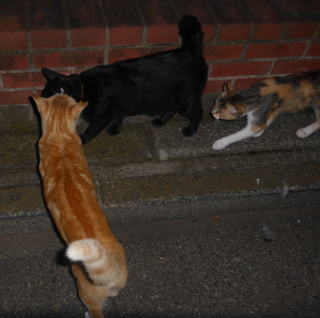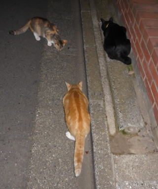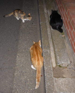 2.九郎ちゃんと三毛珍獣ちゃんが密接なのに何故か距離がある茶珍獣ちゃん。前は常に尾をあげていたのに最近の茶珍獣ちゃんは尾を上げていない時も多くなりました。