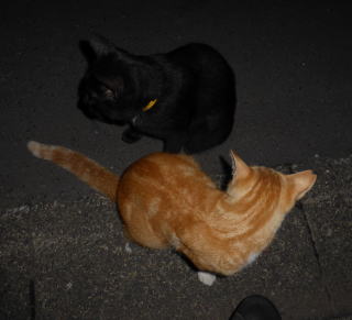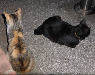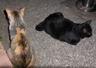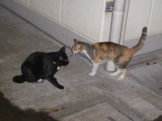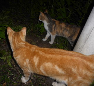 43.うつむいた三毛珍獣ちゃんですが、翌日は九郎ちゃんと仲良くしていました。