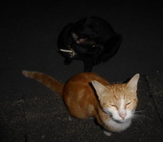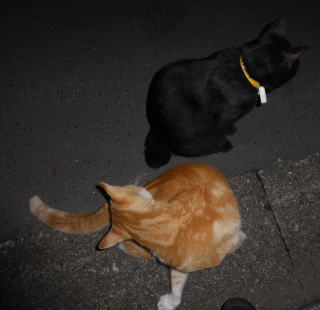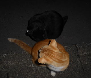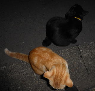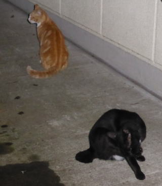 雨の夜は三毛珍獣ちゃんと一緒にパパを待つ九郎ちゃん。まるで夫婦みたいですね。