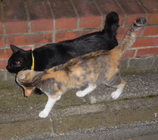 8.九郎ちゃんにお尻を向ける三毛珍獣ちゃんと三毛珍獣ちゃんのお尻に寄り添う九郎ちゃん。エロ親父らしいしぐさですね。