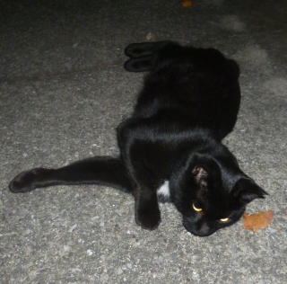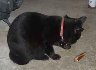 雄猫が雌猫にちょっかいをだして威嚇する事や小動物や昆虫で狩りの練習をする事がある。しかし九郎ちゃんは他のネコちゃんを見るとサバンナの猛獣が狩りをする様な体勢で狩りの練習をする。他のネコちゃんはいい迷惑だ。フーちゃんやクーちゃんに謝れ。