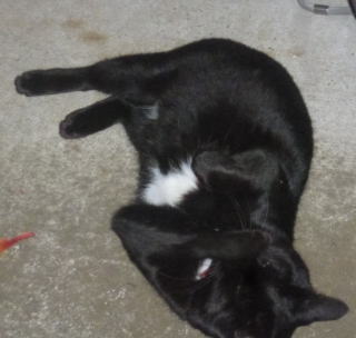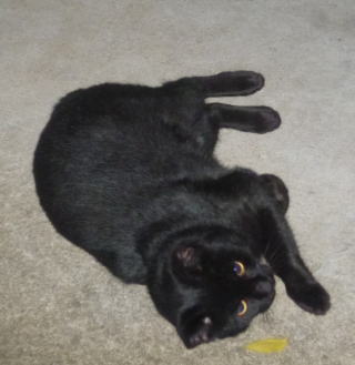9.ニャンコ伸びポーズ。九郎ちゃんはいつもニャンコ伸びポーズをしてゴロニャンしてパパの足にマーキング行動して最後にパパが強制ダッコ。
