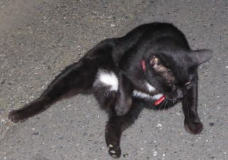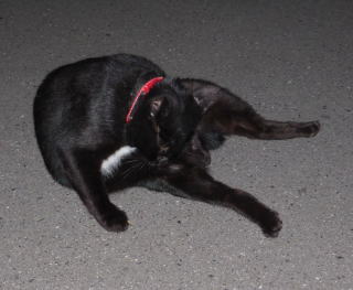28.肝心の九郎ちゃんは人間なら不可能に近いまでの前屈状態で右足の毛繕いをしています。ネコちゃんはここまで腰が曲がるのですね。