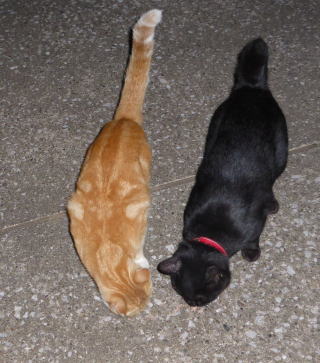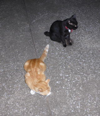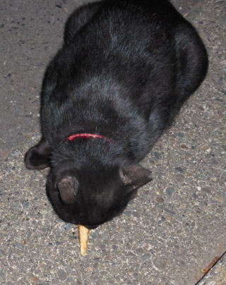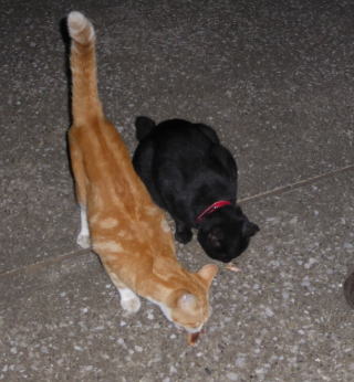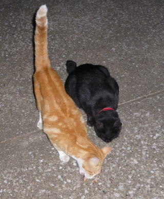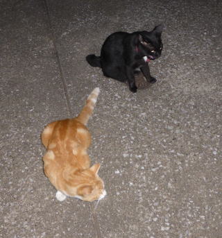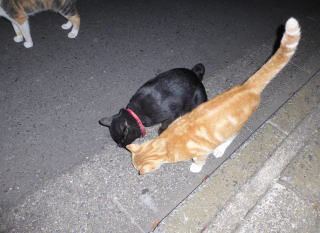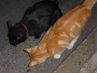 4.猛暑日(35度以上)になる前は互いに回し食いをしていた茶珍獣ちゃんと九郎ちゃんでしたが、猛暑日(35度以上)以後ははやく食べ終わった方が遅い方の焼き鰹を横取りしようとする仲になってしまいました。特に九郎ちゃんは女の子に対する配慮が暑さでなくなったのか横取りの常習犯になってしまいました。