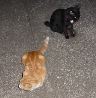 38.画像で見ても小柄な九郎ちゃんと細長い茶珍獣ちゃんとは体長に差があります。