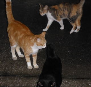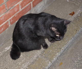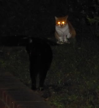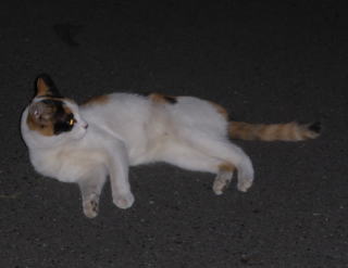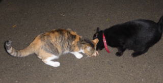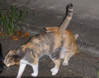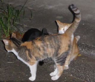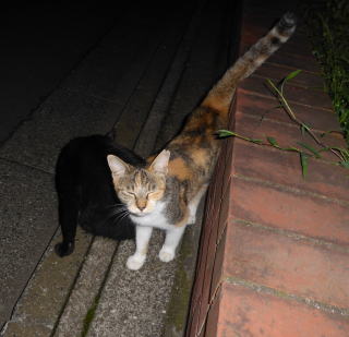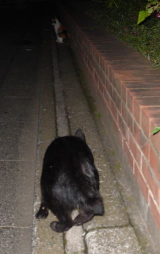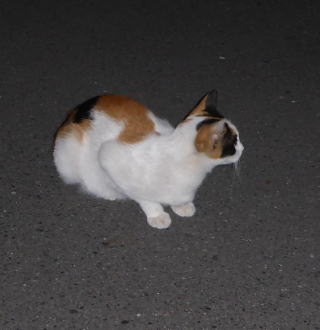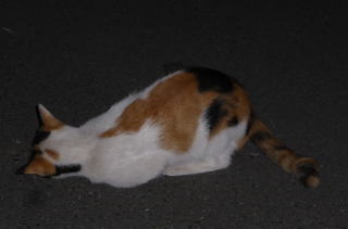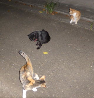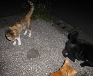 35.見ての通り、胴長で細長い体形の泥棒猫の細子(本名は貧子)はクーちゃんや茶珍獣ちゃんより少し小さいのですが日本猫の百合ちゃんやフミちゃんよりも1.5倍以上もある大柄な猫です。瞬発力がスゴく猛ダッシュで走って来て無防備に焼き鰹を食べてネコちゃんの頭部を爪出しネコ・パンチで襲い、横取りされる側のネコちゃんが避けた処で焼き鰹を泥棒猫して猛ダッシュで逃げていきます。剛力女の茶子ちゃんの様なパワーが無くてもスピードで勝負しています。こんな胴長な日本猫は見た事がないから危険な外来種なのかもしれません。