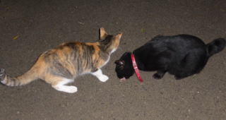15.三毛珍獣ちゃんが九郎ちゃんに「女の子をイジメるのは止めて」と話かけました。三毛珍獣ちゃんは自己主張の強いネコちゃんですね。