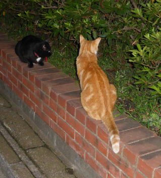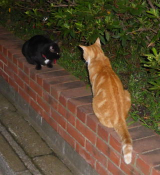 36.泥棒猫の細子(本名は貧子)にいつも警戒を続ける茶珍獣ちゃんです。