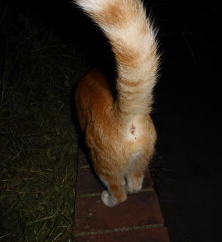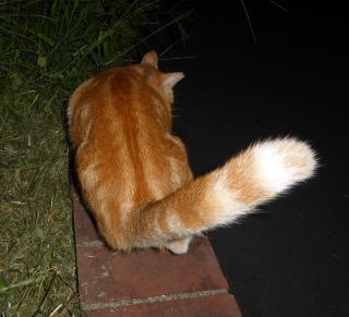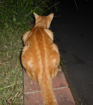 38.尾を下した茶珍獣ちゃん。日本猫はハイテンションな状態な時のみ尾を上げますが、外来種である茶珍獣ちゃんはいつも尾を上げているからハイテンションなのでしょうか?違う様に感じます。