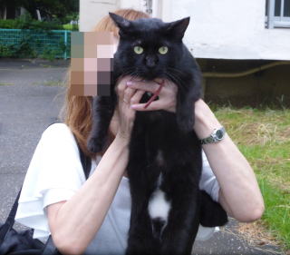 44.いつもは雌猫のお尻ばかり追っかけているエロ親父の九郎ちゃんですが、ママにあっさり捕まって赤子の様にダッコされています。いつもの凶暴な九郎ちゃんはどこにいったのですか?。