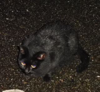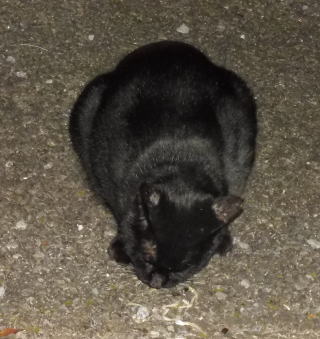 39.黒猫三姉弟の(仮名)黒猫Aちゃんは丸顔ですね。