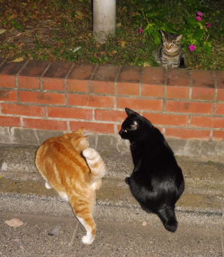 15.茶珍獣ちゃんと(仮名)キジ虎Cちゃん。茶珍獣ちゃんも子猫が可愛いのですね。