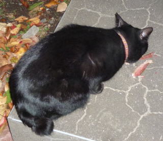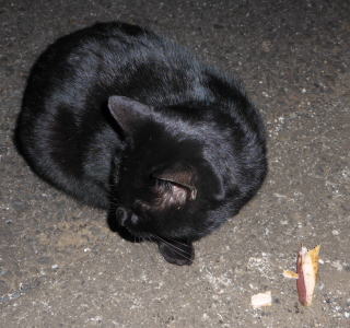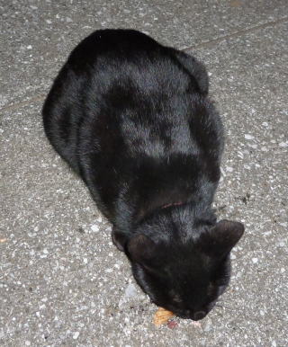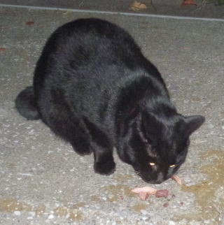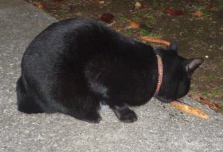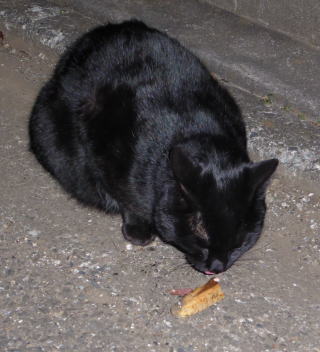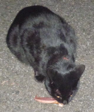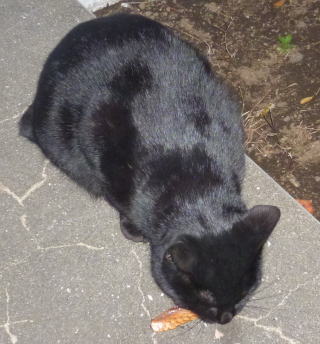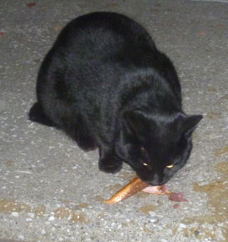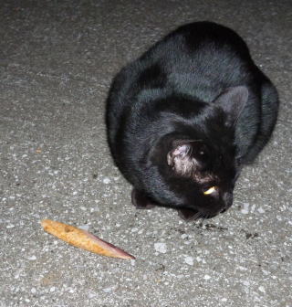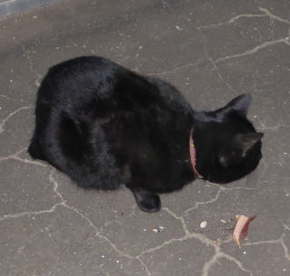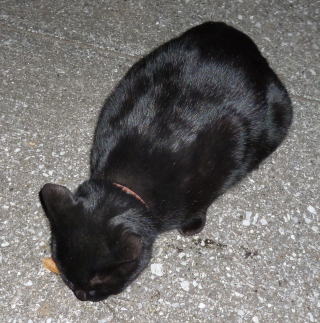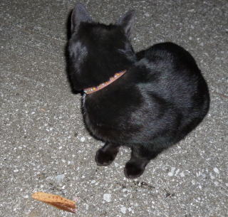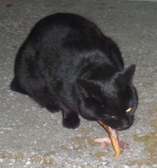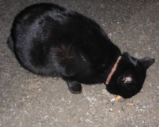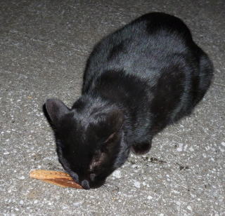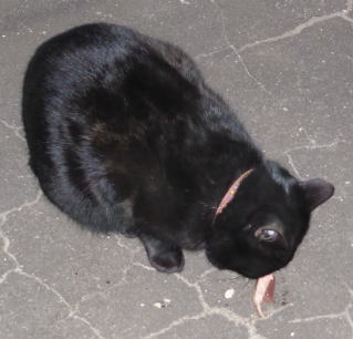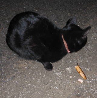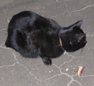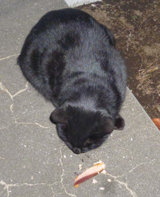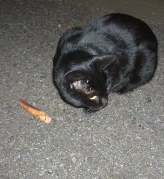 47.律儀な九郎(猫八)ちゃんに応えて何本でも焼き鰹を与える。