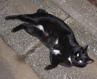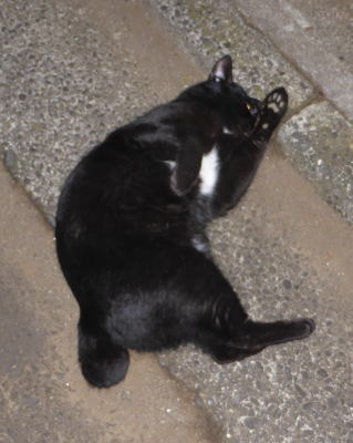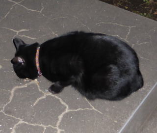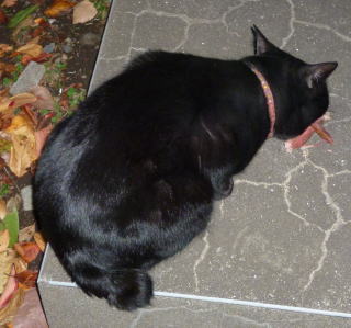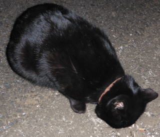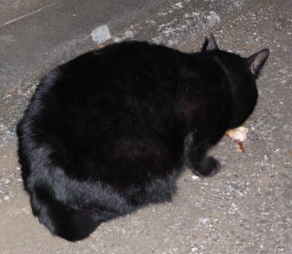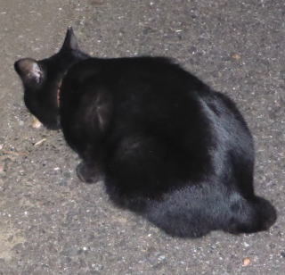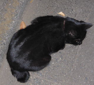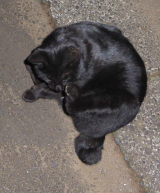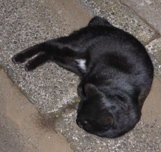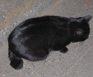 上記のアップ。九郎ちゃんは目を閉じて寒さをこらえている。九郎ちゃんの律儀さは忠犬ハチ公をしのいでいる。九郎ちゃんに猫なのにハチ公をしのいでいるから猫八の称号を贈ろう。
