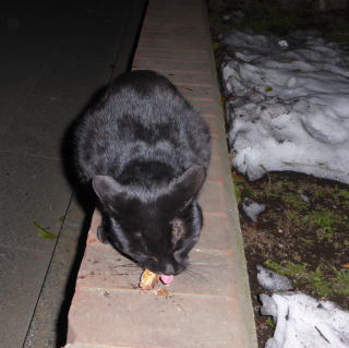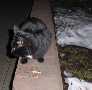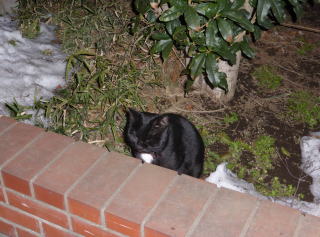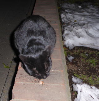 48.翌日も残雪の中、九郎(猫八)ちゃんはパパを待っていてくれた。