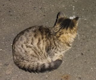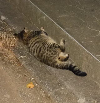 22.(仮名)キジ虎Bちゃん。コンクリートの上でゴロニャンして痛くないのですか?。