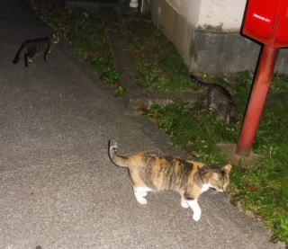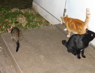 2.(仮名)キジ虎Aちゃんがいたと思ったら(仮名)キジ虎Bちゃん、(仮名)キジ虎Cちゃんの三姉妹がそろっていました。