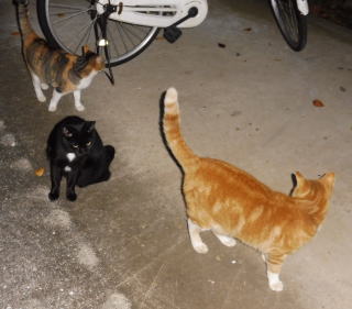 1.今夜もキジ虎三姉妹の宴が始まりました。