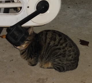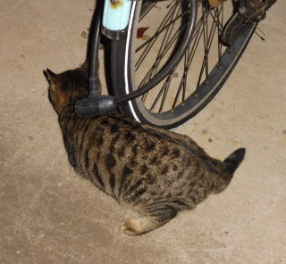43.自転車小屋で戯れる(仮名)キジ虎Bちゃん。