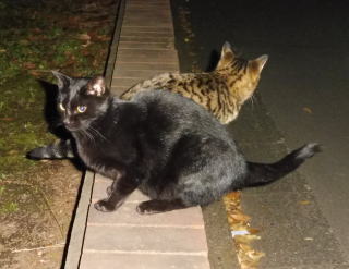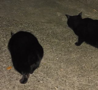 42.「おや。右の黒猫Cちゃんと左の九郎ちゃんが遭遇しました」。