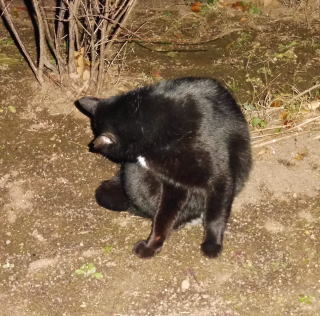 6.この黒白の雌猫は弱い声で鳴きます。きっと普段は声を出していないのでしょうね。