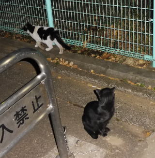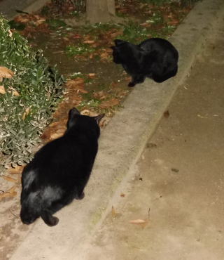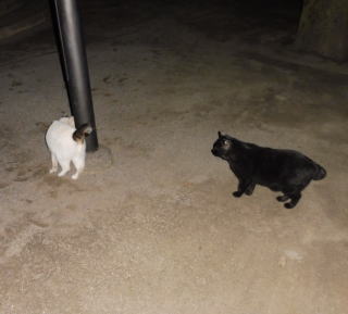 1.黒猫Aちゃんは顔を前後に押し潰した様な顔立ちで、更に胸に白い毛が少しあり、九郎ちゃんと共通点があります。発情期が始まって九郎ちゃんは縄張りの外へ追い払う事はなくなりました。