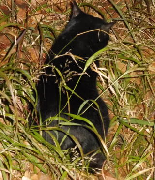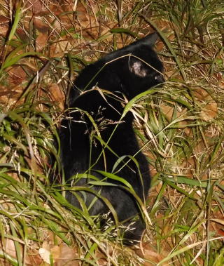 6.黒タヌキちゃんは雌の子猫が近付くとこうやって草むらに隠れる様になりました。