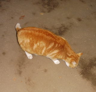 19.発情期が到来して、ネコちゃん大戦(実際は小競り合い)を引き起こすほど対立していた九郎ちゃんと茶子ちゃん一派の雌猫達との争いは解消されました。九郎ちゃんは妻の珍獣ちゃん姉妹には内緒で茶子ちゃん一派のネコの集会に参加しました。女狩りが目的の様です。九郎ちゃんは「女!女!女!」と鼻歌を歌いながら力強いゴロニャンを始めました。勢い余って右顔から右肩にかけて土が付いてしまいましたね。
