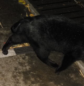 43.こちらはウロウロしている「黒ポン太ちゃん」です。「黒タヌキちゃん」との識別は出来ましたか?。