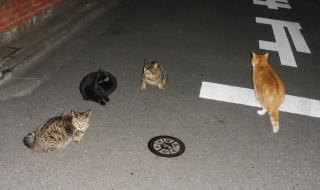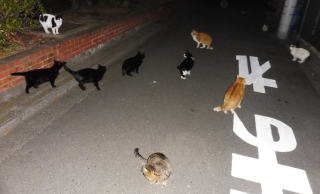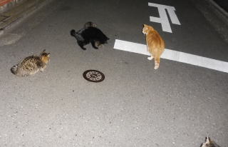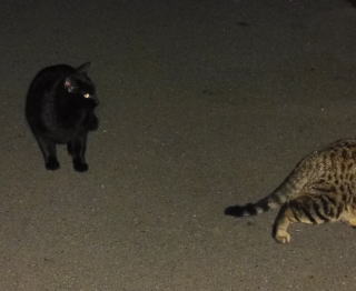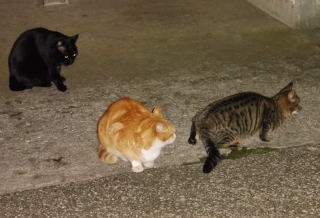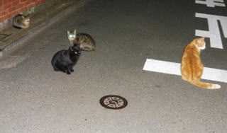 40.黒猫三姉弟が九郎ちゃんに会いにそぞろ歩いています。