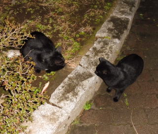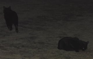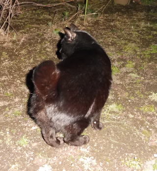 15.ネコちゃんには50m先まで聞き分けられる聴力があると言われています。遠くから「黒ポン太ちゃん」が「黒タヌキちゃん」に会いに来た足音が聞こえた様です。