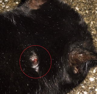 上記のアップ。全体的に傷口が瘡蓋に覆われていますが、まだ歯型の箇所から血が出ています。これは痛いだろうね。