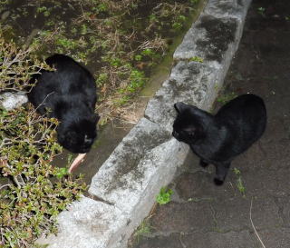 24.「黒タヌキちゃん」は自称「息子」の「黒ポン太ちゃん」に焼き鰹を回し食いをする意思はない様です。ソッポを向いて焼き鰹を食べ続けています。