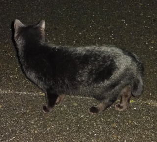 36.「黒ポン太ちゃん」に追いつかれてしまいました。意外と黒猫Cちゃんは胴長ですね。九郎ちゃんより、黒猫Aちゃん、黒猫Bちゃんに近い体形をしています(実の姉弟だから)。