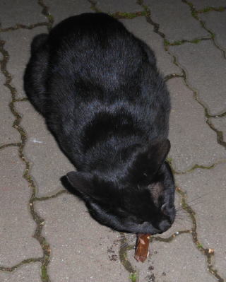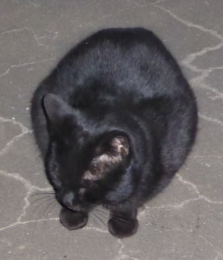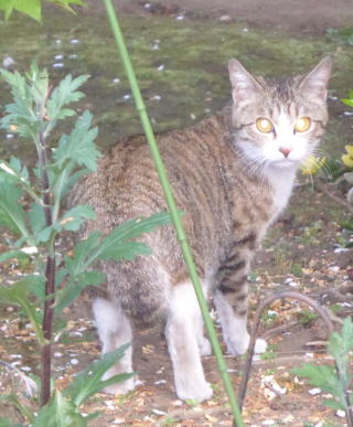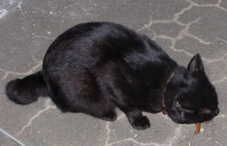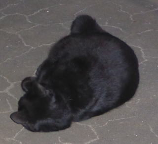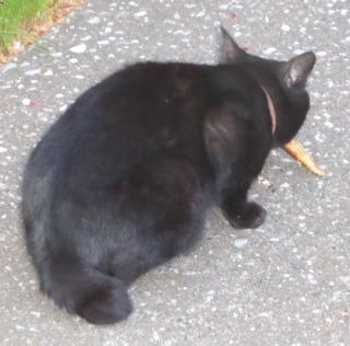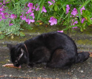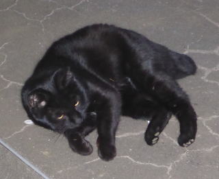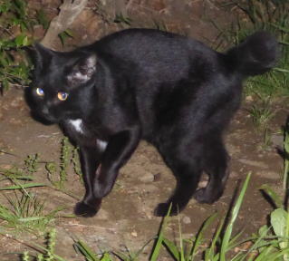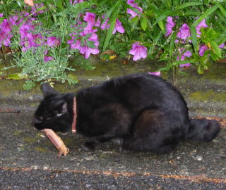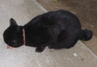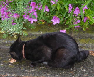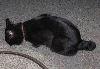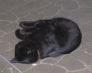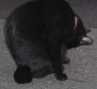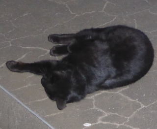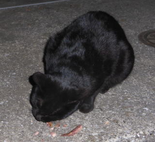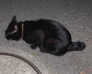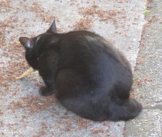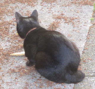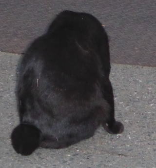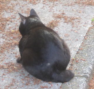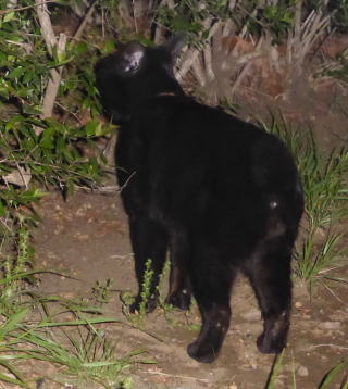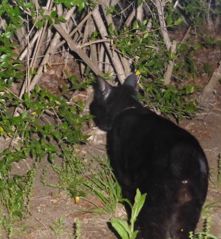 24.熱帯ジャングルの黒豹みたいな...垣根の前の九郎ちゃん。