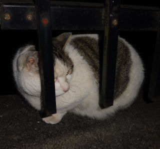 54.九郎ちゃんの左背の縦のスジは爪出しネコ・パンチの跡かもしれません。